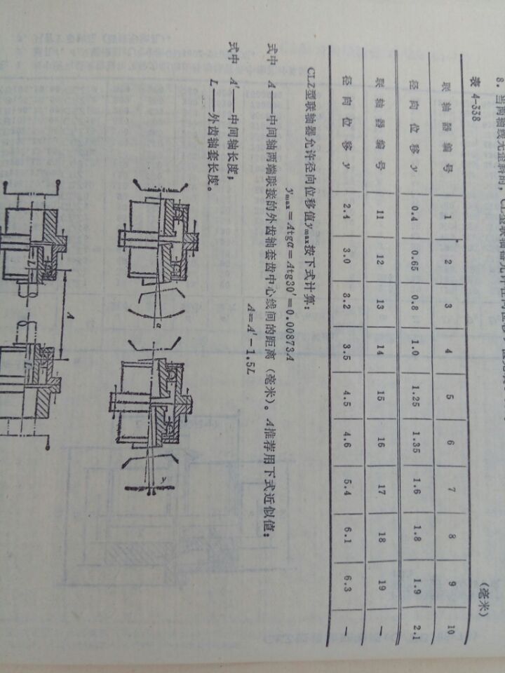 6.當(dāng)兩軸中心線無徑向位移時(shí),兩鏈接軸的不同軸度所引起的每一外齒軸套線對內(nèi)齒圈軸線的歪斜不應(yīng)大于30.