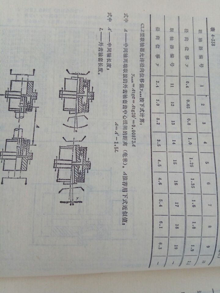 8.當(dāng)兩軸線無歪斜時(shí),CL型聯(lián)軸器允許徑向位移y值見表4-338.